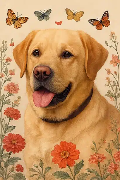 Portrait Labrador Fleurs : l’élégance botanique et printanière