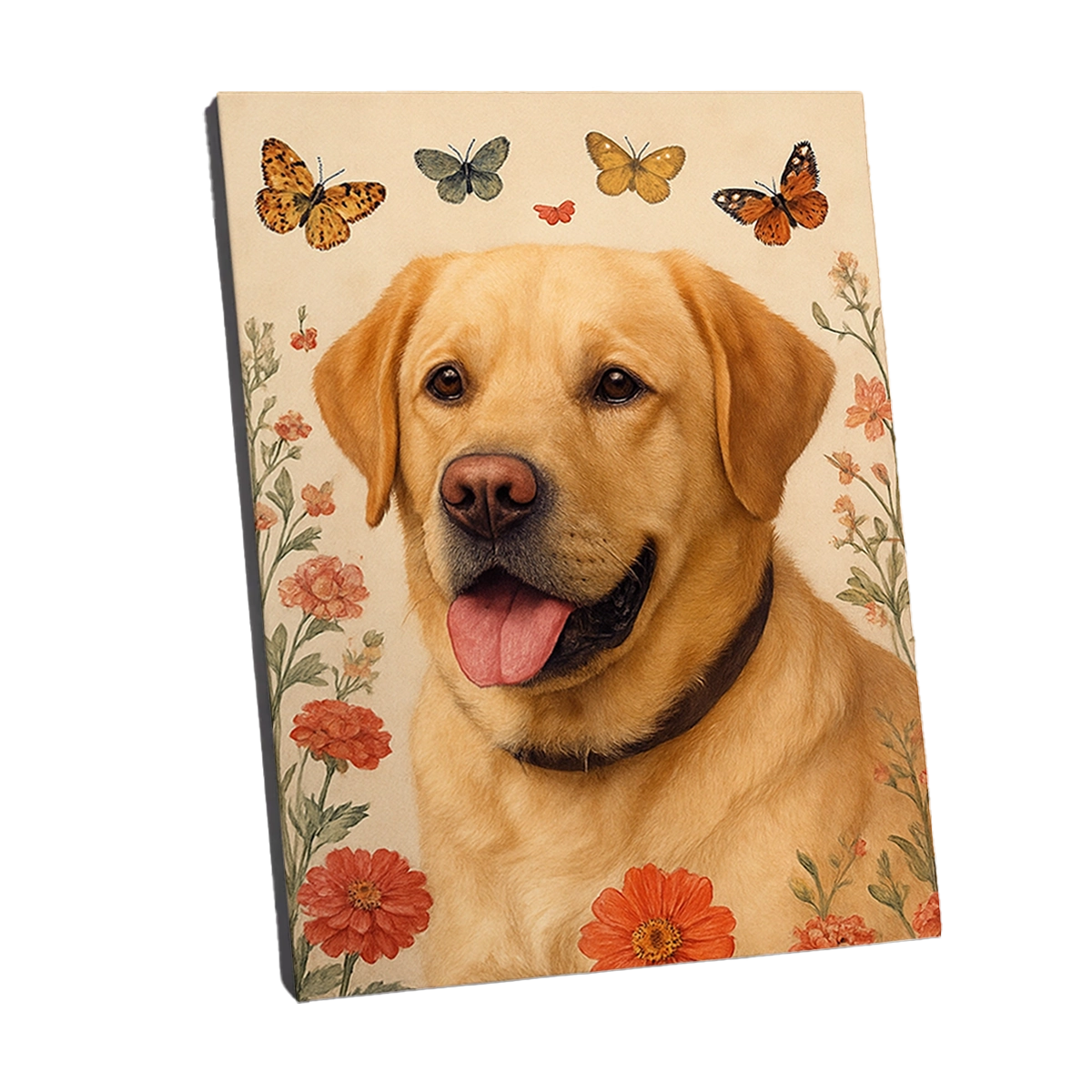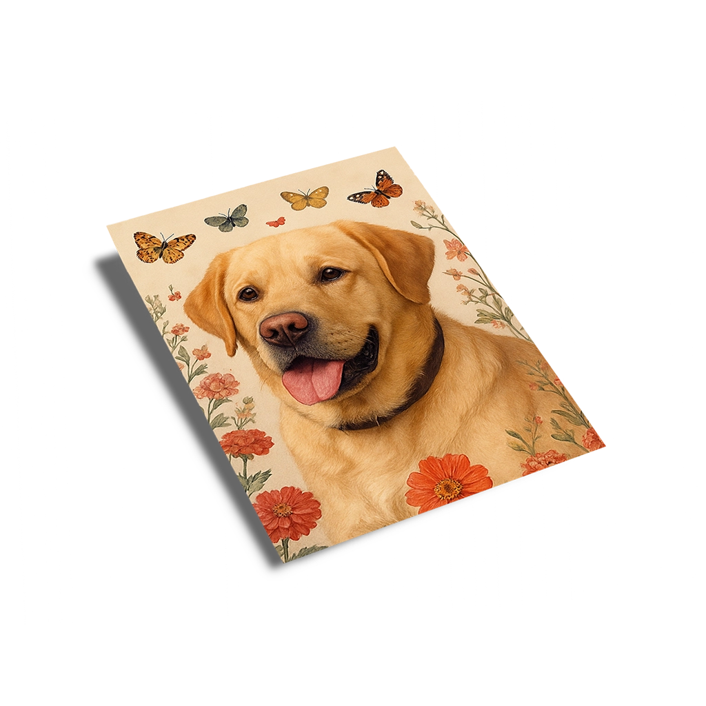 Nous vous proposons des supports qui accentuent le charme délicat de votre Portrait Labrador Fleurs :