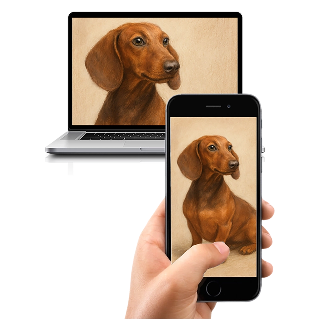 - Validation et production : Une maquette du Portrait Teckel Pastel vous est soumise pour approbation. L’impression est lancée après votre accord.